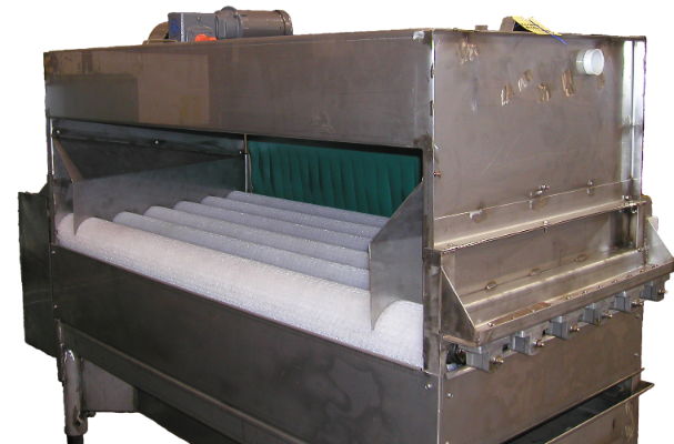 Gently removes surface dirt and helps line up melons for transfer into the Classifier